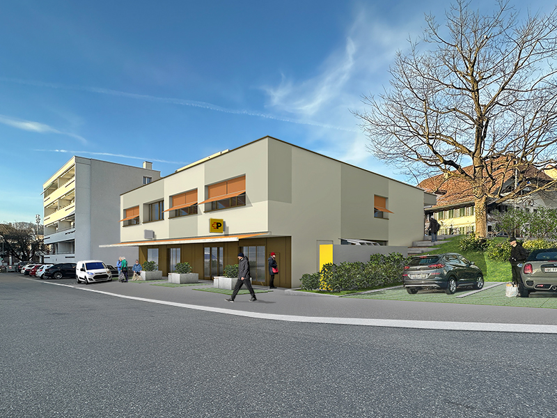 im Erdgeschoss mit Postomat und MyPost24-Paketautomat. Bereitstellen